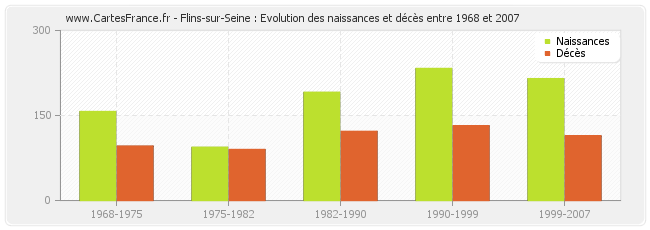 Flins-sur-Seine : évolution des naissances et décès de 1968 à 2007