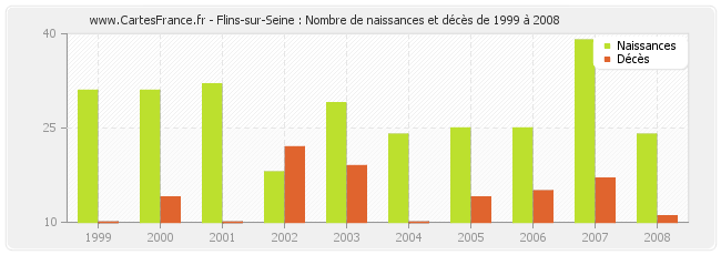 - Flins-sur-Seine en 1999 : 31 naissances et 10 décès