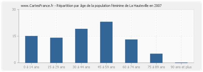 Répartition de la population féminine de La Hauteville par âge en 2007 :