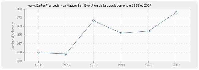 La population de La Hauteville était de 177 habitants en 2007, 159 habitants en 1999, 157 habitants en 1990, 169 habitants en 1982, 137 habitants en 1975 et 138 habitants en 1968.
