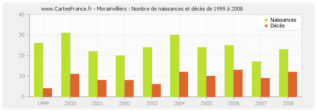 - Morainvilliers en 2008 : 23 naissances et 12 décès
