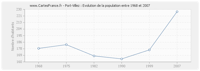 La population de Port-Villez était de 227 habitants en 2007, 176 habitants en 1999, 164 habitants en 1990, 168 habitants en 1982, 183 habitants en 1975 et 178 habitants en 1968.