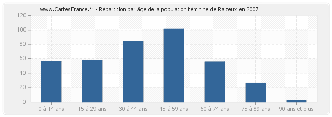 - Femmes de 45 à 59 ans habitant Raizeux : 101