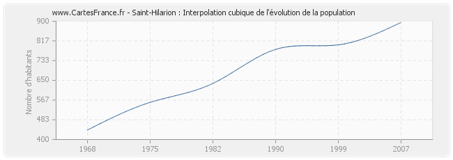 Cette courbe reprend l'historique de la population de Saint-Hilarion de 1968 à 2007 en interpolation cubique. Ceci permet d'obtenir plus précisément la population de la commune de Saint-Hilarion les années ou aucun recensement n'a été effectué.