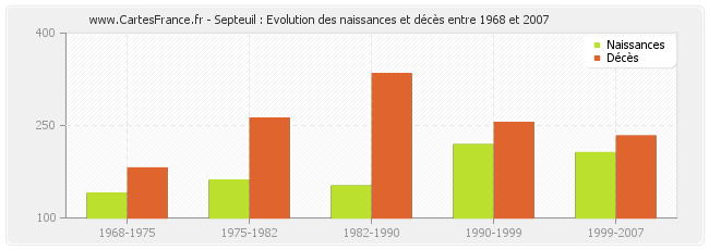 Septeuil : évolution des naissances et décès de 1968 à 2007