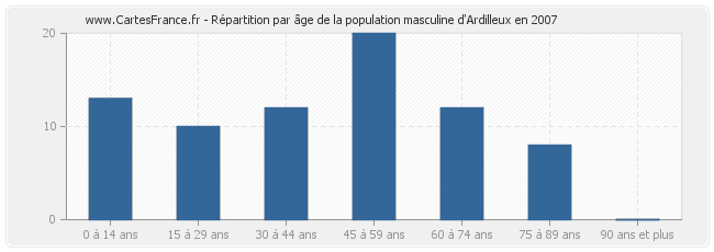 Répartition de la population masculine d'Ardilleux par âge en 2007 :