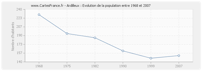 Historique de la population d'Ardilleux de 1968 à 2007 :