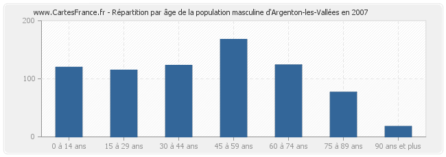 Répartition de la population masculine d'Argenton-les-Vallées par âge en 2007 :