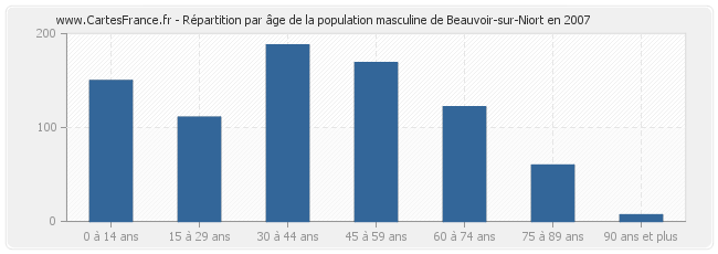 Répartition de la population masculine de Beauvoir-sur-Niort par âge en 2007 :