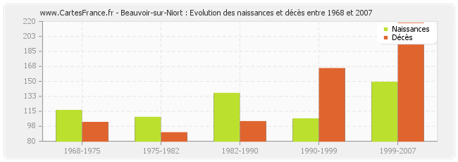 Beauvoir-sur-Niort : évolution des naissances et décès de 1968 à 2007