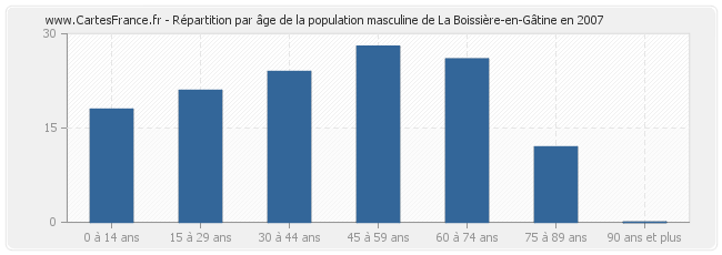 Répartition de la population masculine de La Boissière-en-Gâtine par âge en 2007 :