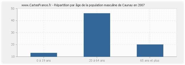 Répartition de la population masculine de Caunay par âge en 2007 :