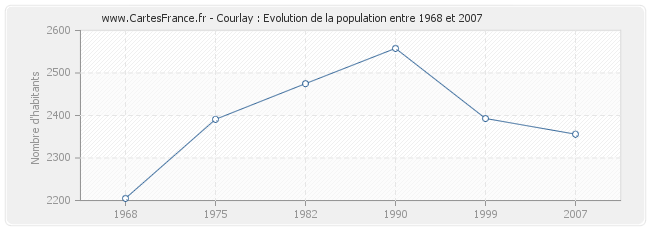La population de Courlay était de 2 356 habitants en 2007, 2 393 habitants en 1999, 2 558 habitants en 1990, 2 475 habitants en 1982, 2 391 habitants en 1975 et 2 205 habitants en 1968.
