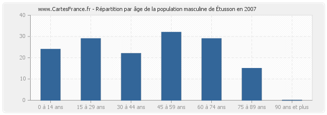 Répartition de la population masculine d'Étusson par âge en 2007 :