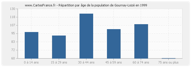 Répartition de la population de Gournay-Loizé par âge en 1999 :