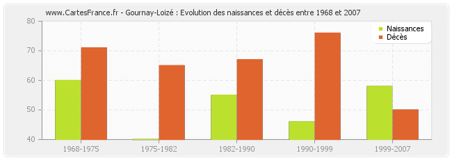 Gournay-Loizé : évolution des naissances et décès de 1968 à 2007
