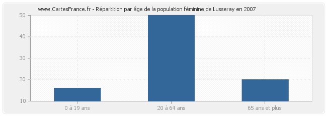 - Femmes de 20 à 64 ans habitant Lusseray : 50