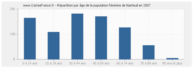 Répartition de la population féminine de Nanteuil par âge en 2007 :