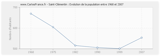 La population de Saint-Clémentin était de 554 habitants en 2007, 501 habitants en 1999, 506 habitants en 1990, 516 habitants en 1982, 605 habitants en 1975 et 670 habitants en 1968.
