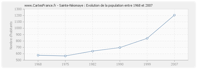 La population de Sainte-Néomaye était de 1 207 habitants en 2007, 842 habitants en 1999, 697 habitants en 1990, 642 habitants en 1982, 566 habitants en 1975 et 577 habitants en 1968.