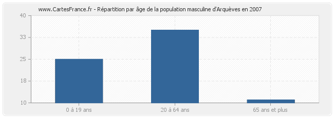 - Hommes de 0 à 19 ans habitant Arquèves : 25
