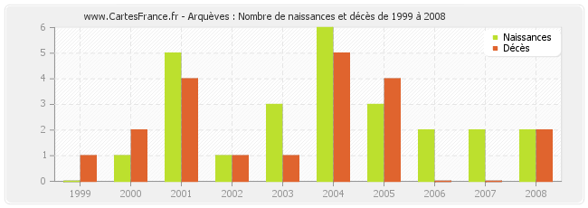 Arquèves : naissances et décès de 1999 à 2008