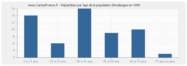 - Population d'Avelesges de 30 à 44 ans : 16 habitants