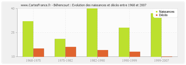 Béhencourt : évolution des naissances et décès de 1968 à 2007