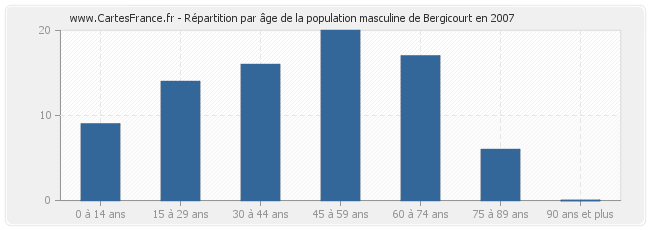 Répartition de la population masculine de Bergicourt par âge en 2007 :