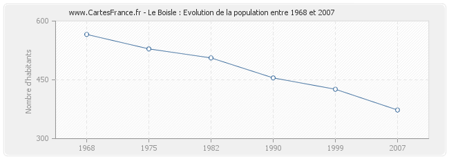 La population de Le Boisle était de 373 habitants en 2007, 426 habitants en 1999, 455 habitants en 1990, 506 habitants en 1982, 529 habitants en 1975 et 566 habitants en 1968.