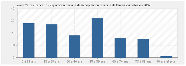 - Femmes de 45 à 59 ans habitant Buire-Courcelles : 32