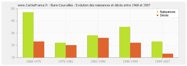 Buire-Courcelles : évolution des naissances et décès de 1968 à 2007