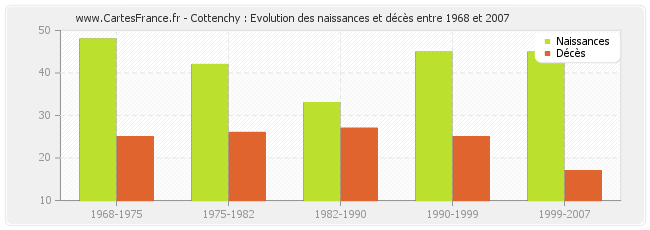 Cottenchy : évolution des naissances et décès de 1968 à 2007