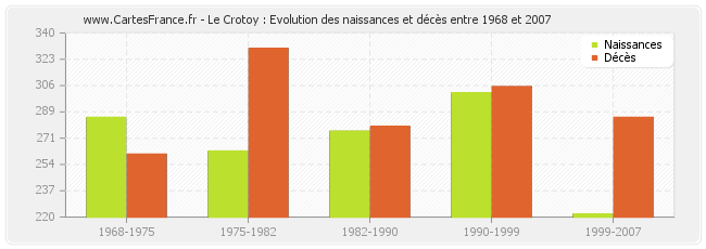 Le Crotoy : évolution des naissances et décès de 1968 à 2007