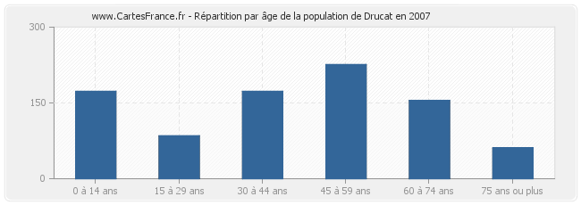 - Population de Drucat de 45 à 59 ans : 226 habitants