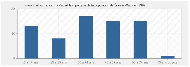 - Population d'Éclusier-Vaux de 15 à 29 ans : 17 habitants