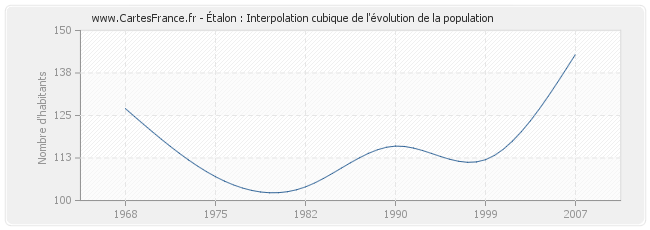 Cette courbe reprend l'historique de la population d'Étalon de 1968 à 2007 en interpolation cubique. Ceci permet d'obtenir plus précisément la population de la commune d'Étalon les années ou aucun recensement n'a été effectué.
