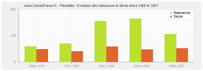 Flesselles : évolution des naissances et décès de 1968 à 2007