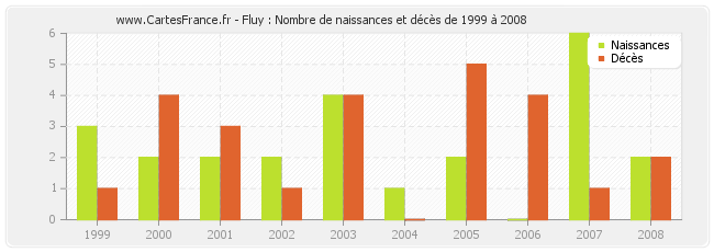 Fluy : évolution des naissances et décès de 1968 à 2007