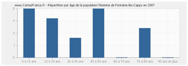Répartition de la population féminine de Fontaine-lès-Cappy par âge en 2007 :
