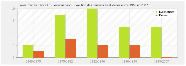 Fossemanant : évolution des naissances et décès de 1968 à 2007