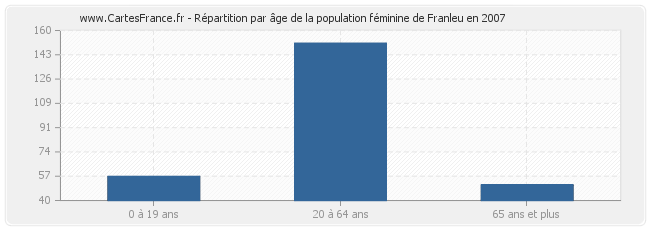 Répartition de la population féminine de Franleu par âge en 2007 :
