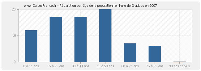 Répartition de la population féminine de Gratibus par âge en 2007 :