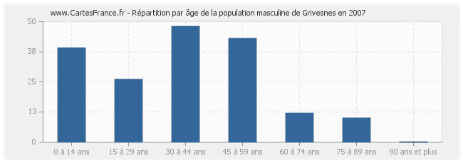 Répartition de la population masculine de Grivesnes par âge en 2007 :