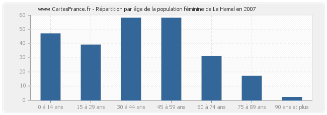 - Femmes de 45 à 59 ans habitant Le Hamel : 58