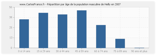 Répartition de la population masculine de Heilly par âge en 2007 :