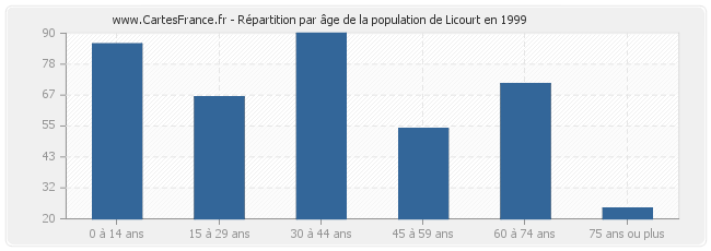 - Population de Licourt de 30 à 44 ans : 90 habitants