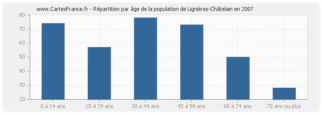- Population de Lignières-Châtelain de 75 ans ou plus : 28 habitants