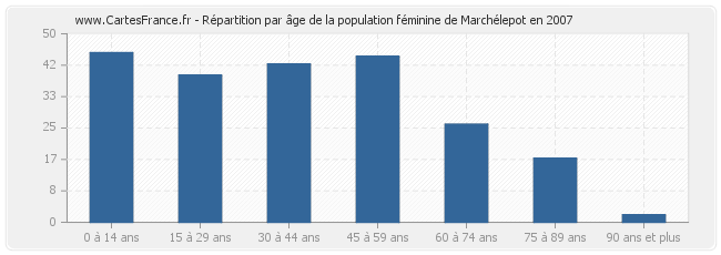 - Femmes de 0 à 14 ans habitant Marchélepot : 45