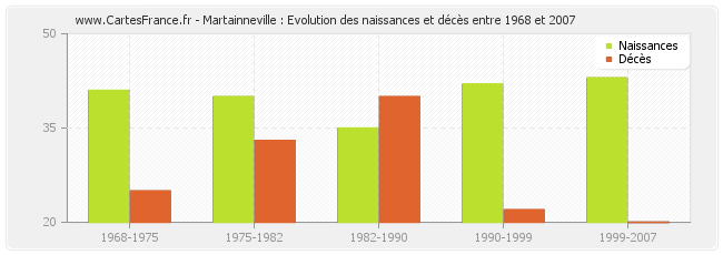 Martainneville : évolution des naissances et décès de 1968 à 2007